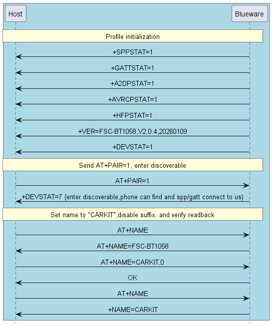 8 uart_send("AT+NAME=CARKIT,0\r\n"); // disable MAC address suffix