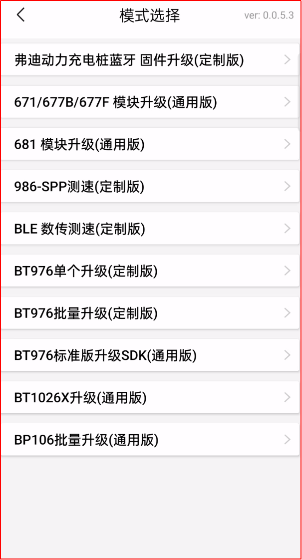 主界面,点击 弗迪动力充电桩蓝牙 固件升级