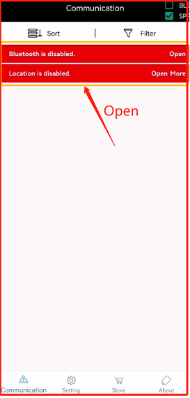 The phone needs to turn on Bluetooth & Location , otherwise FeasyBlue will not be able to scan nearby Bluetooth devices. Take Android as an example: