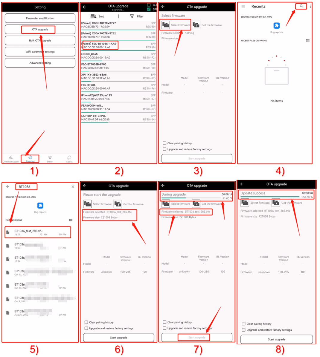 FeasyBlue already supports over-the-air upgrade function that can update the firmware of Bluetooth devices through Bluetooth data transmission.