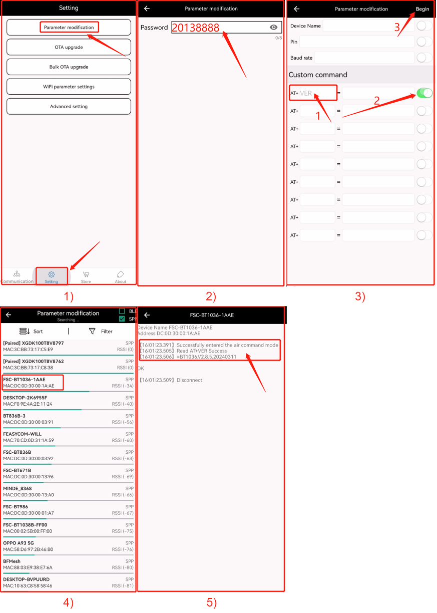 Enter AT+VER in the custom comand , select this item, and Begin ;