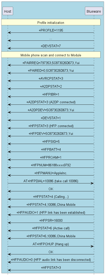 If the factory firmware of the module is transceiver-in-one program, the default +PROFILE=339. You need to send the AT command AT+PROFILE=1195 to configure it to audio sink mode (enabling SPP, GATT Server, HFP Sink, A2DP Sink, AVRCP-Controller, and PBAP).