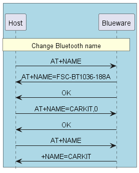 Before the MCU modifies any parameters, it is recommended to first query, then modify, and finally verify. For the MCU to modify the device name to CARKIT, the reference code example is as follows: