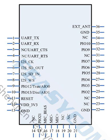 To ensure the stable operation of the Bluetooth module, the power supply for the VDD_3V3 pin must reserve a current of ≥ 300mA for the Bluetooth module.