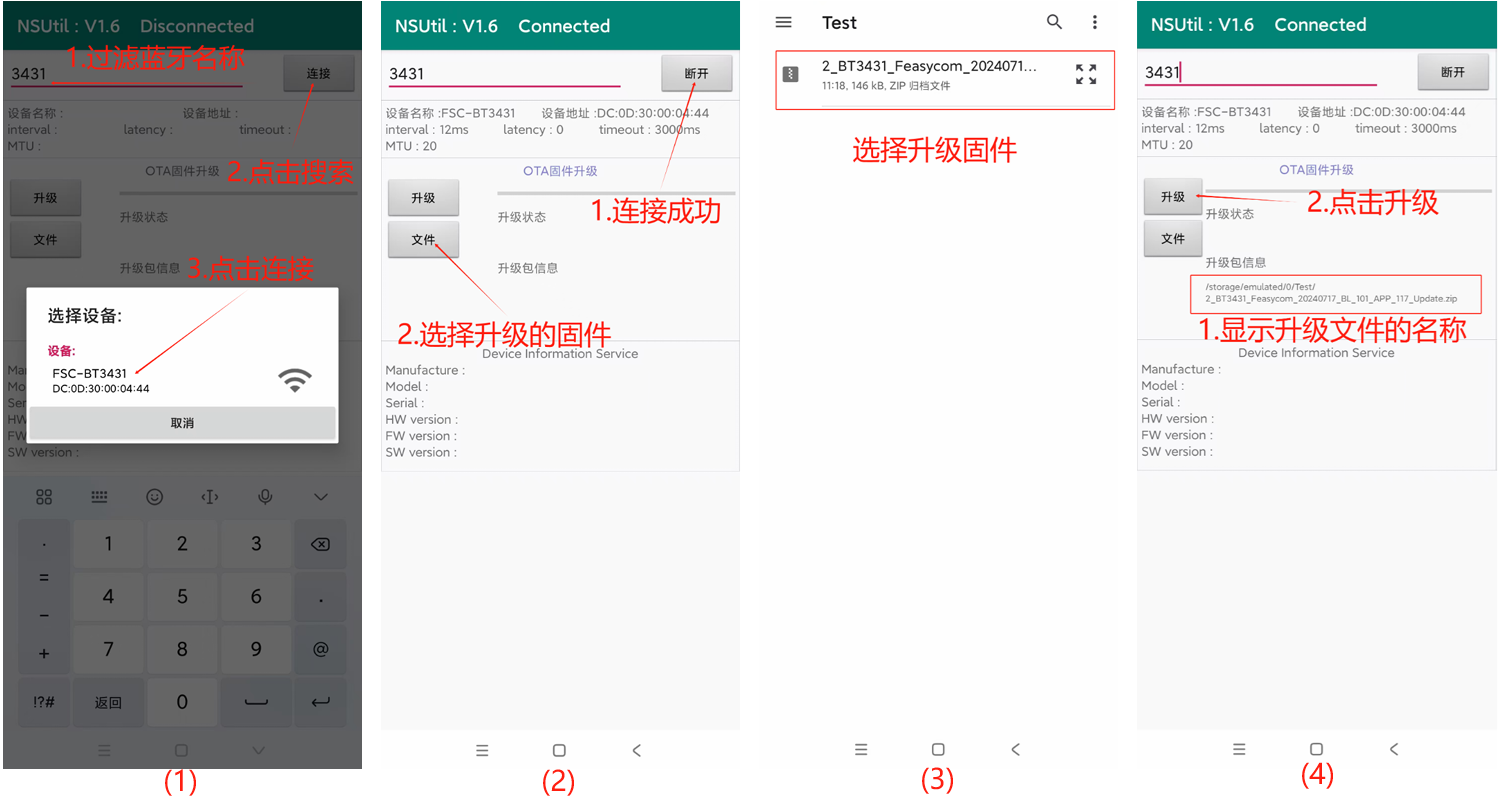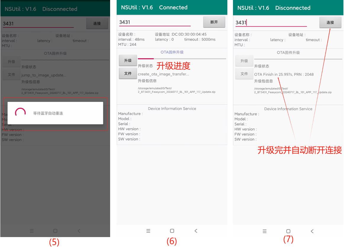 点击 升级 按钮后,APP将自动对蓝牙模块进行重连;